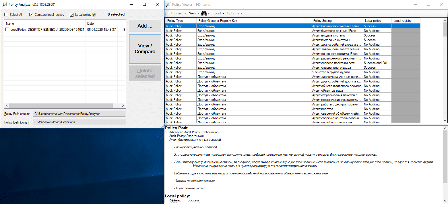 Как уже было сказано выше, в Security Compliance Toolkit всего два инструмента — PolicyAnalyzer и LGPO.