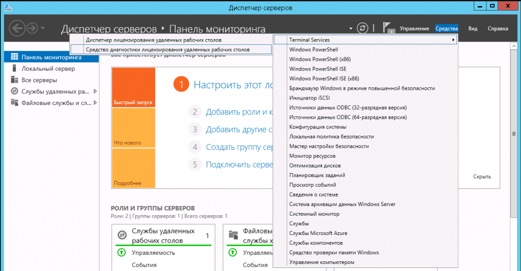 Теперь нужно запустить Средство диагностики лицензирования удаленных рабочих столов. Для этого выберите соответствующую команду из меню Средства, Terminal Services Диспетчера серверов.