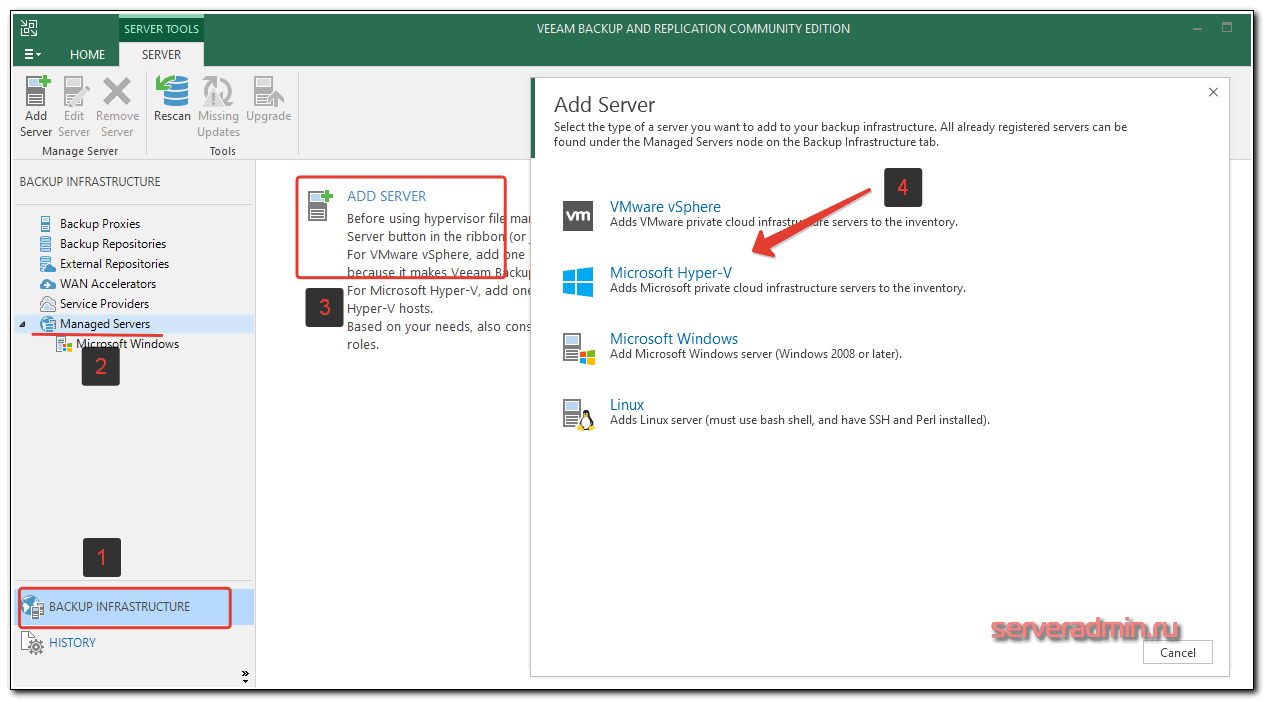 Указываете, что это Standalone Hyper-V server, добавляете учетные данные и дожидаетесь окончания установки необходимых компонентов на hyperv сервере. После этого можно создать резервную копию виртуальной машины. Для этого выбираете гипервизор, виртуальную машину и либо делаете сразу бэкап, либо создаете запланированное задание.
