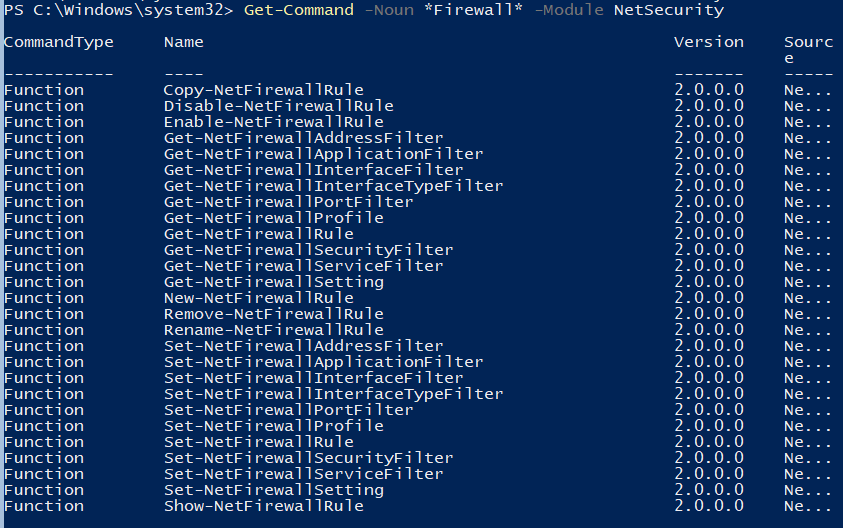 Get-Command -Noun *Firewall* -Module NetSecurity