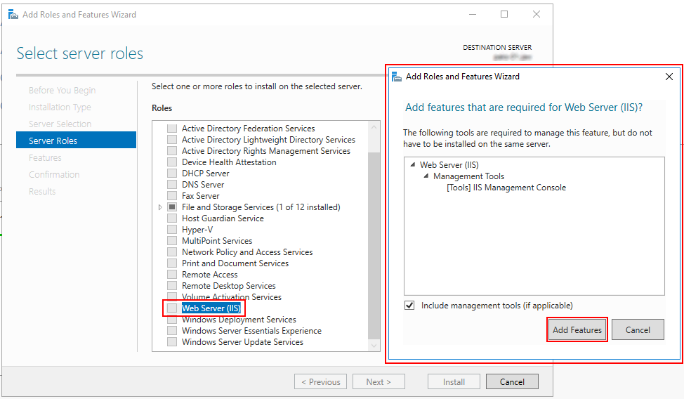 IIS 7.0 or later must be installed on your server, and the following must be configured: