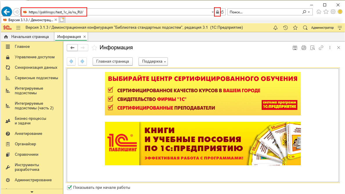 Для публикации информационной базы нужно открыть конфигуратор конкретной базы от имени администратора и перейти в пункт меню «Администрирование». После этого выбрать «Публикация информационной базы».