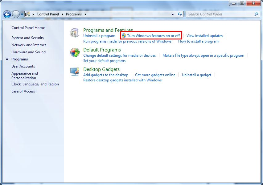 Установка RSAT аналогична установке Adminpak.msi на клиентских компьютерах Windows 2000 или Windows XP. Однако существует одно серьезное отличие: в Windows 7 средства не доступны автоматически после загрузки и установки RSAT. Включить средства, которые необходимо использовать с помощью панели управления. Чтобы включить инструменты, нажмите кнопку Начните, нажмите панель управления, щелкните Программы и функции, а затем нажмите кнопку Включить или отключить функции Windows.
