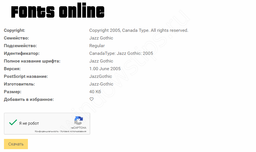 Рисунок 6. Просмотр шрифта перед скачиванием