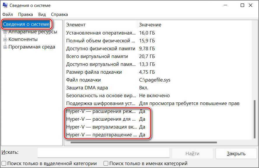 В сведениях о системе смотрим, стоит ли значение «Да» для элемента Hyper-V.