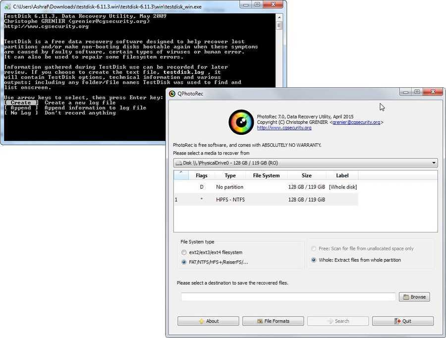 Для получения информации о FAT12, FAT16, ext2/ext3, HFS +, ReiserFS и других типов разделов, читайте Запуск TestDisk. Running the TestDisk Program.