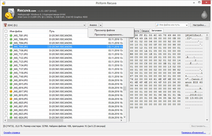 3. Софт предлагает пользователю предварительный просмотр найденной информации и ее восстановления с устройства RAW (выборочно или полностью). Чтобы восстановить важные данные, выделите необходимые файлы, кликните по любому из них правой кнопкой мыши и нажмите клавишу Восстановить.