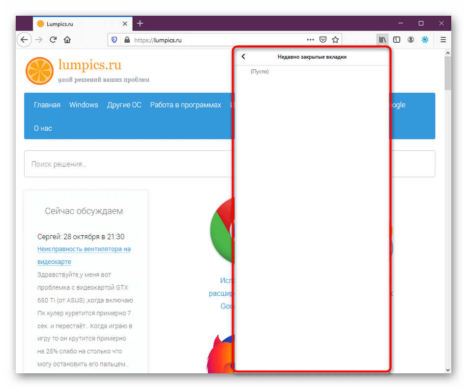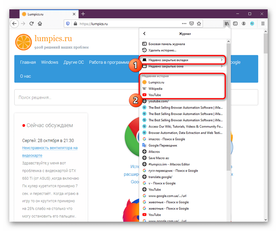 Как вернуть вкладки из предыдущей сессии с помощью меню браузера