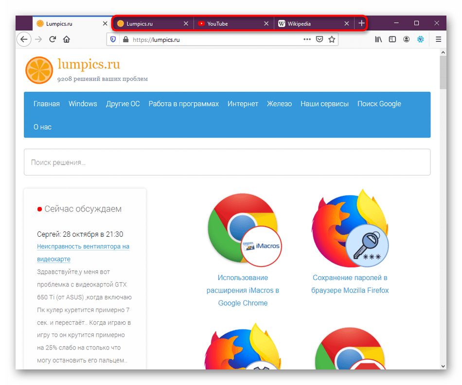 Вкладки — это страницы в браузере, открытые в текущий момент. Они находятся на горизонтальной панели в самом верху. С их помощью можно быстро переключаться между сайтами, запущенными в данный момент в браузере.