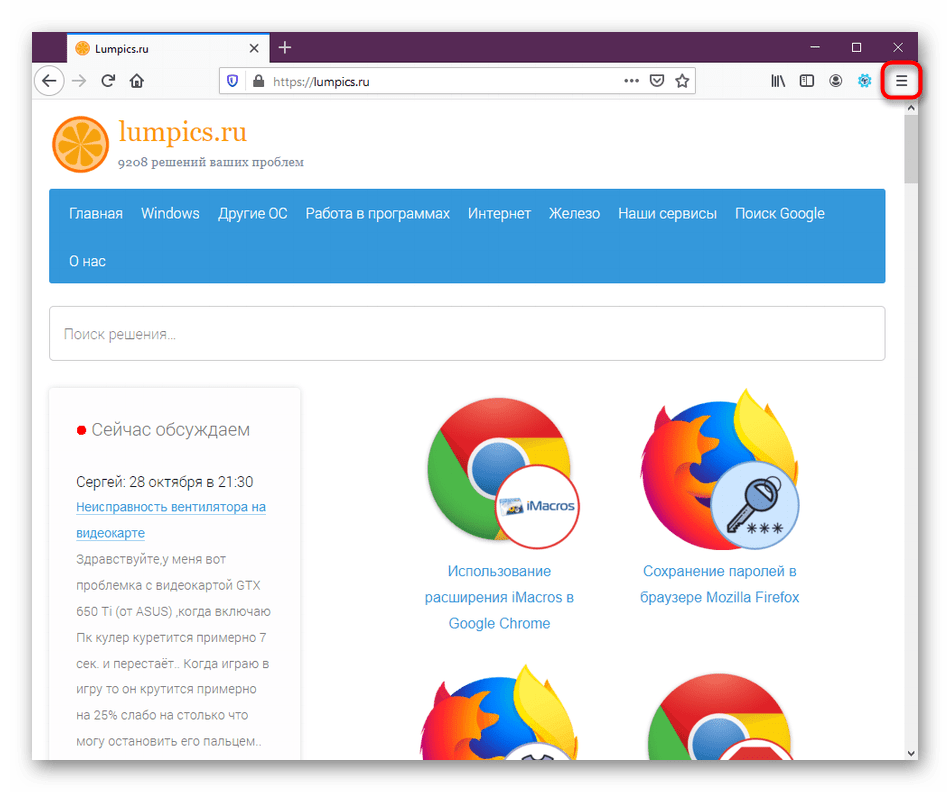- Запустите веб-обозреватель и нажмите на кнопку в виде трех горизонтальных линий для запуска меню.