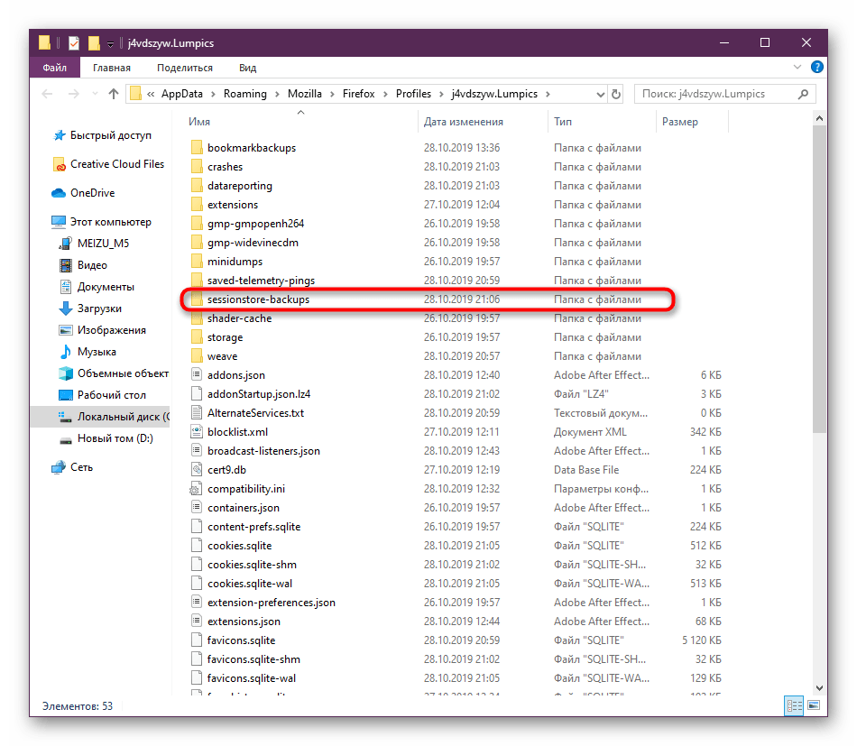 На экране отобразится содержимое папки вашего профиля Firefox.
