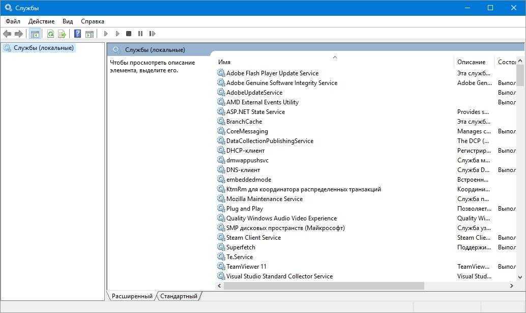 Открыв надстройку, вы увидите весь список сервисов, установленных на компьютере.