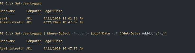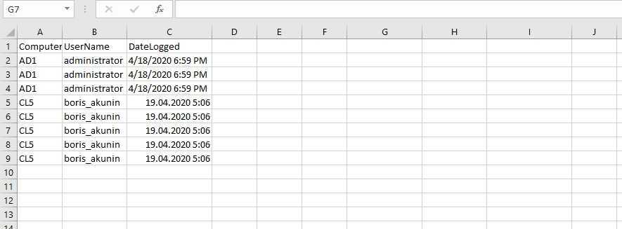 - LogoffDate — это отдельный тип данных даты и времени, а это значит, например, что мы можем увидеть кто вышел за последний час/сутки. Пример будет ниже.