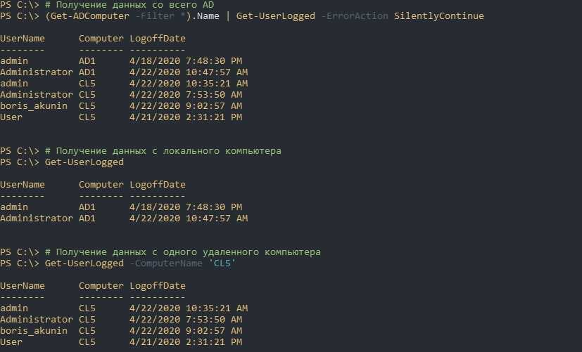 Ключ ‘-ErrorAction SilentlyContinue’ нужен для игнорирования ошибок связанных с выключенными компьютерами. Если его не написать вы получите ошибки формата: