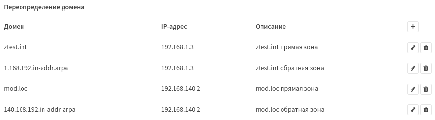 При использовании на устройстве TING DNS сервера Unbound DNS, необходимо в меню Службы -> Unbound DNS -> Переопределение в секции Переопределение домена добавить переопределение прямой и обратной зоны для второго домена домена: