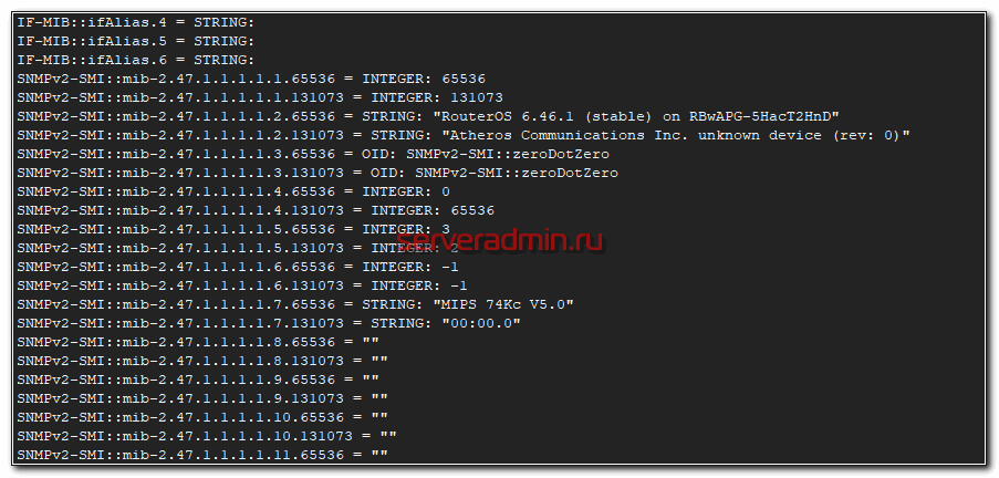 Сходим теперь на zabbix-server и убедимся, что мы через него можем забирать информацию с mikrotik по snmp. Для этого подключимся к нему по ssh и воспользуемся утилитой snmpwalk. Если у вас ее нет, то поставить можно командой: