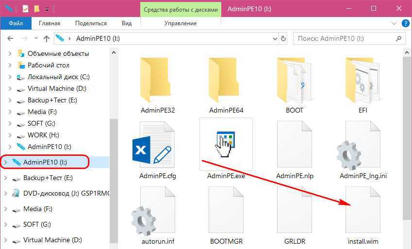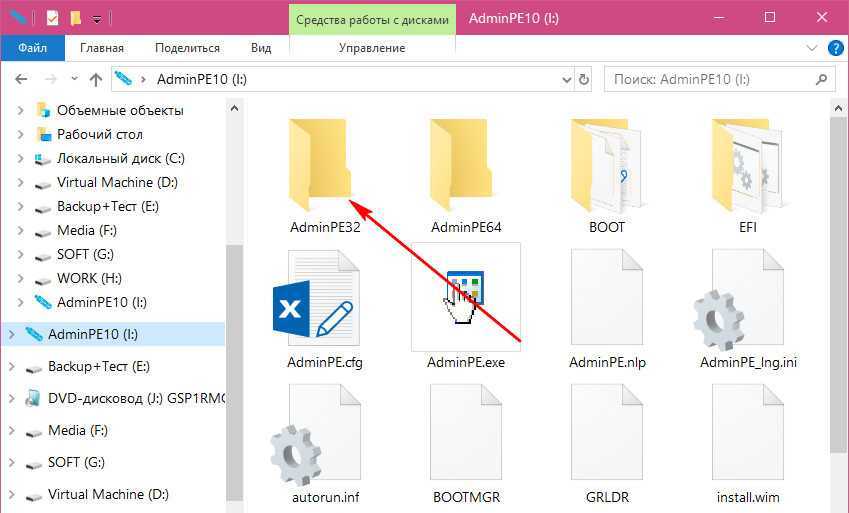 После помещения на флешку WIM-образа её вес будет примерно 5-6 Гб. Если это флешка на 8 Гб, всё прекрасно. Но если в наличии есть только флешка на 4 Гб, после записи WinPE10 TechAdmin заходим в её корень и удаляем папку «AdminPE32».