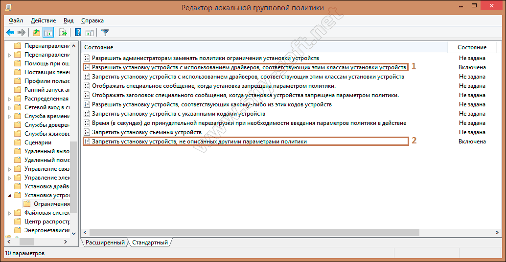 В первой, еще и задаете значения GUID устройств, которые разрешены.