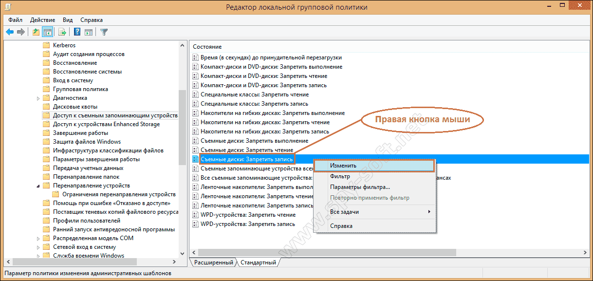 Запрет флешек в Редакторе групповых политик