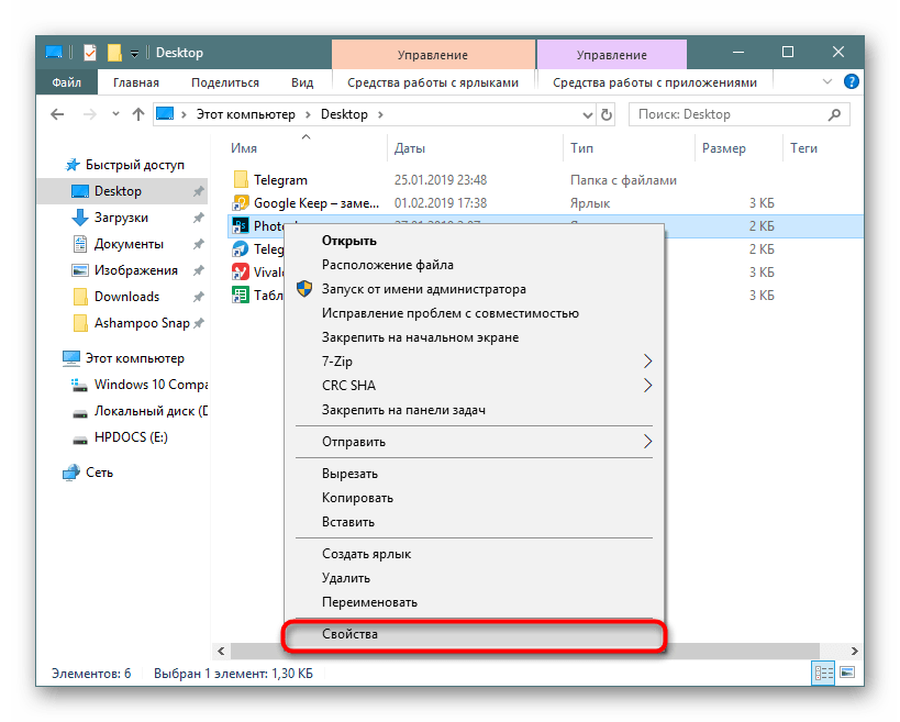 На тот файл, который не получается запустить в Windows 10, необходимо навести курсор мышки и кликнуть правой клавишей. Результатом этого действия станет показ контекстного меню, в котором необходимо выбрать пункт под названием Свойства