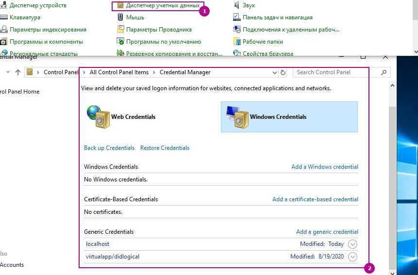 Многие знают, что пароли от сетевых дисков (и многие другие) хранятся в специальном месте под названием Credential Manager. В панели управления он выглядит так: