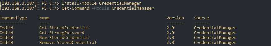 Мы можем получить доступ к этим объектам использовав модуль CredentialManager. Этот модуль не относится к стандартным и устанавливается отдельно: