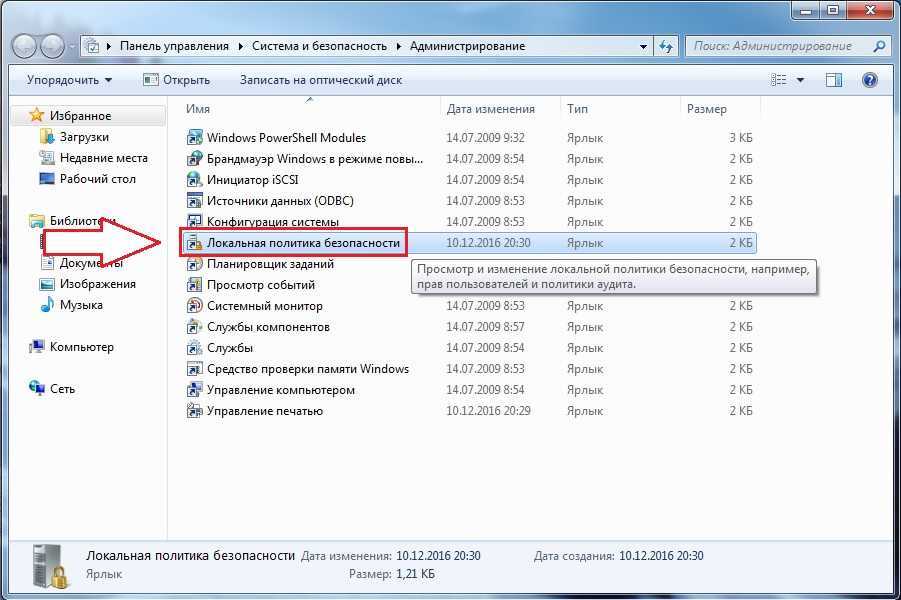 В локальных параметрах безопасности, разверните узел Локальные политики